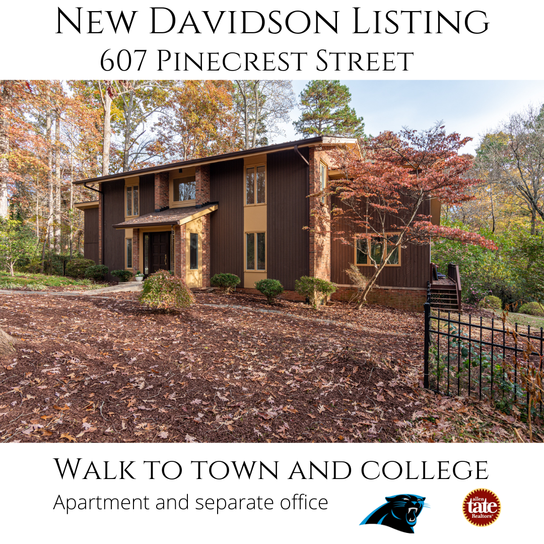 Davidson, NC New listing – 607 Pinecrest Street – offered at $1,175,000. Call Clark Goff for a private showing. 704 996-0948 Additional details- click here LOCATION,LOCATION,LOCATION!!! Don’t let this opportunity to own a home in the heart of the older part of downtown Davidson go by! Mid century modern/contemporary on an acre of nature! Wooded…
